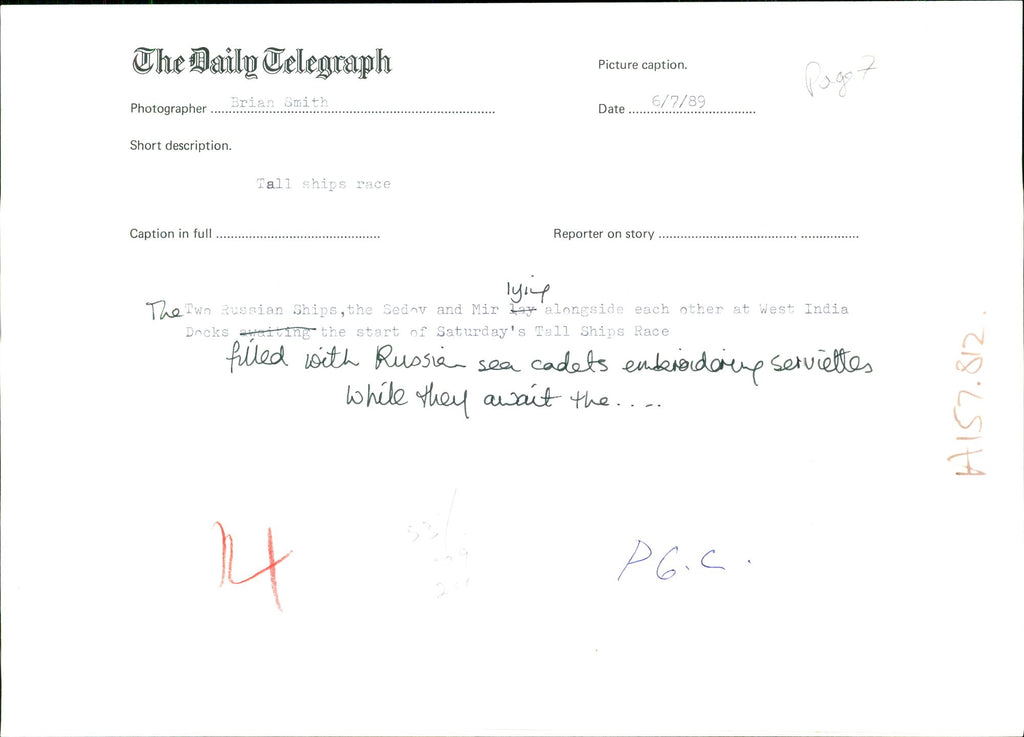 Two Russian ships, the Sedov and MIR lying each other at West India Docks the start of Tall ships race. Two Russian ships, the Sedov and MIR lying each other at West India Docks the start of Tall ships race.