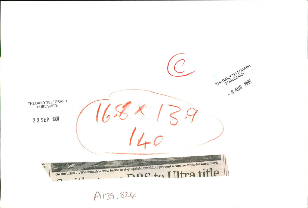 The watermark's Crew Battle to stay upright. - Vintage Photograph
