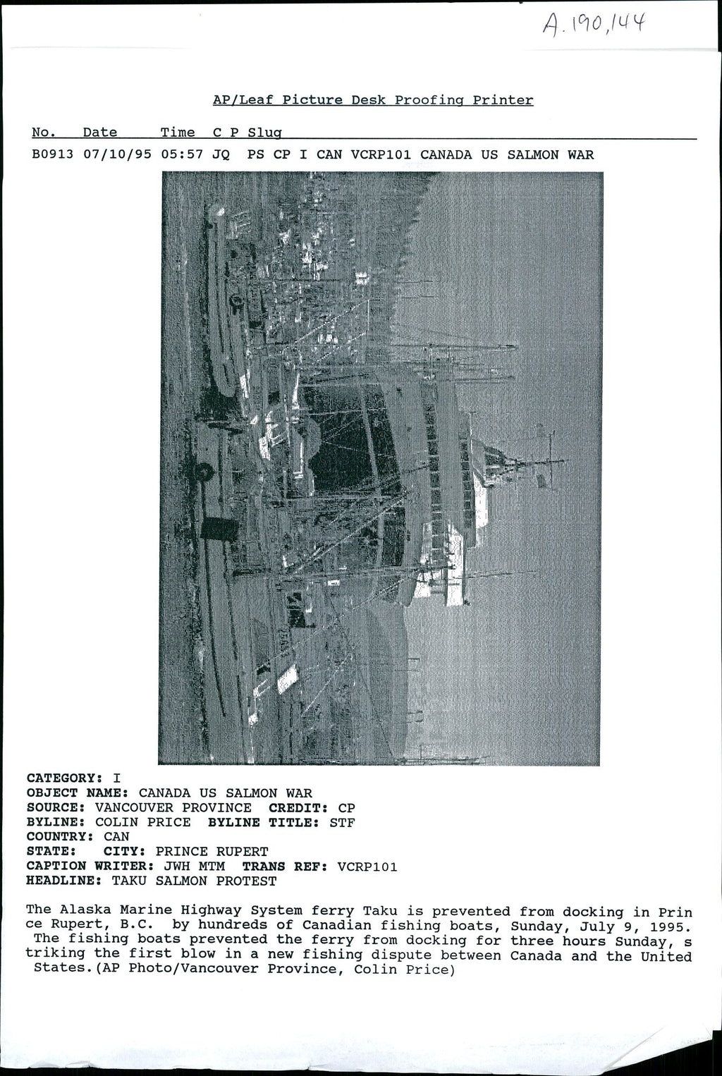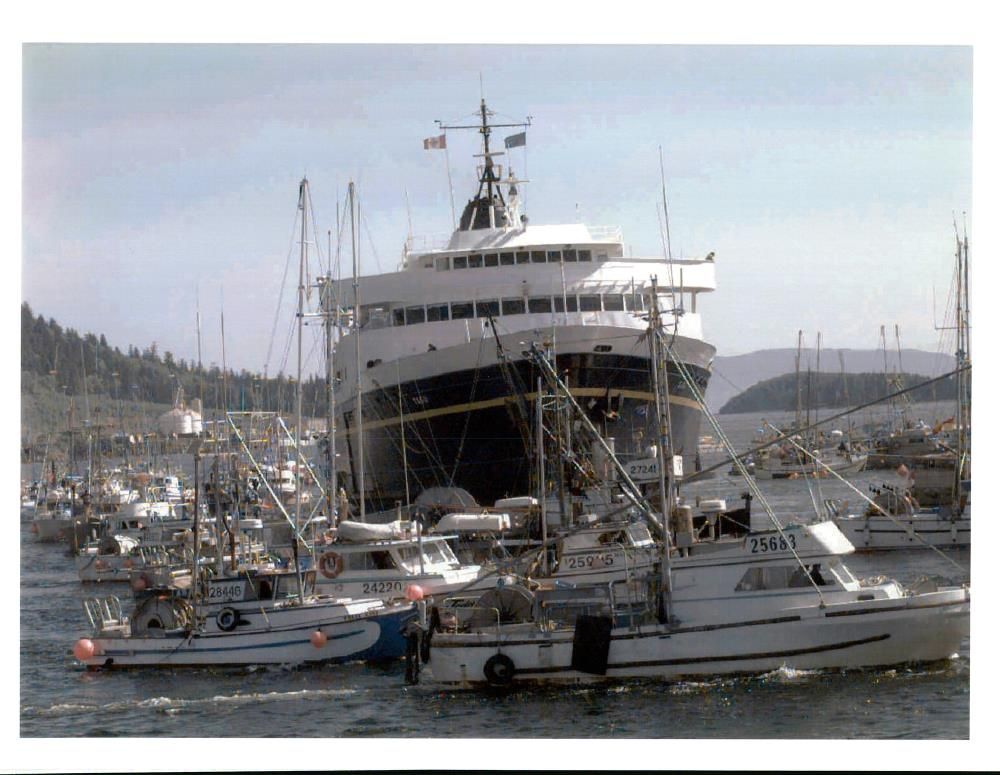 The fishing boats prevented the ferry from docking, striking the first blow in a new fishing dispute between Canada and United States. The fishing boats prevented the ferry from docking, striking the first blow in a new fishing dispute between Canada and United States.