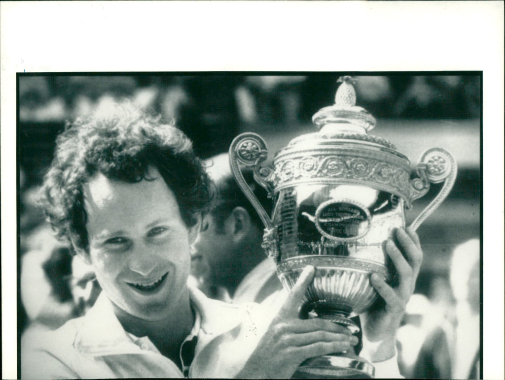 John McEnroe with the Wimbledon trophy - Vintage Photograph