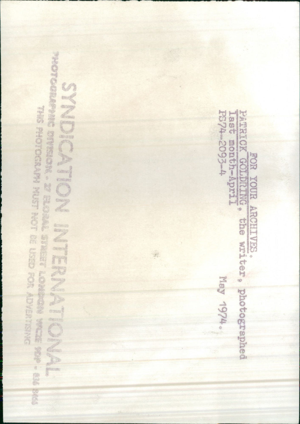 All our press photos are LIMITED ARCHIVE ORIGINALS - they are the actual prints that were used by the newspapers, they are not reprints or digital prints produced by us. All the prints are at least 30 years old and up to 100 years old.