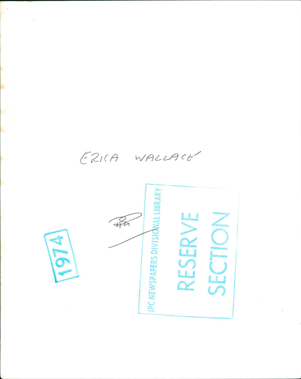 1974 - WALLACE ERICA PEOPLE WRITER IPC, SECTION, LIBRARY 1974 - WALLACE ERICA PEOPLE WRITER IPC, SECTION, LIBRARY