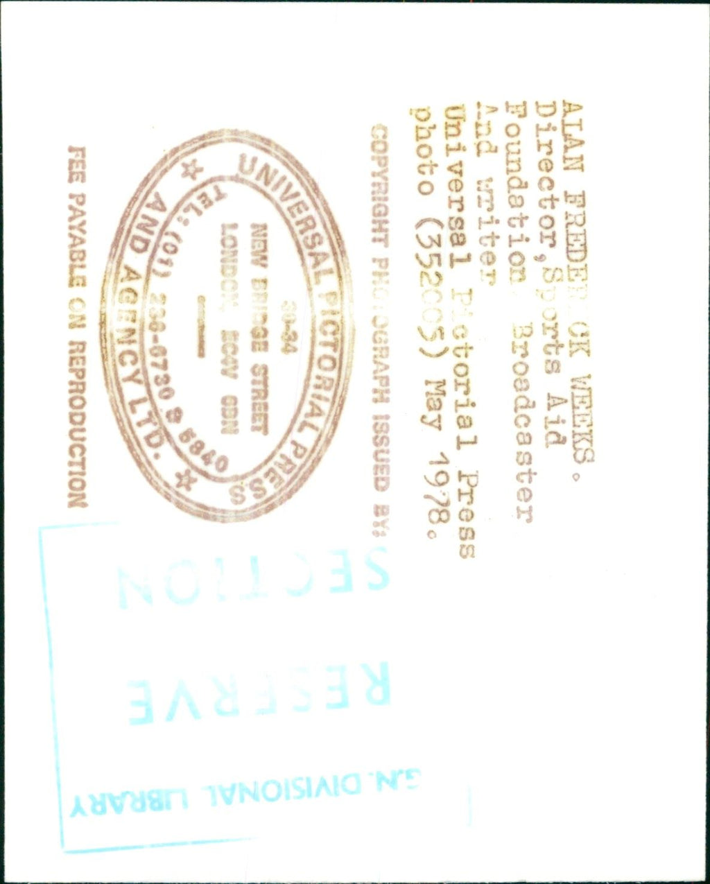 1978 - WEEKS ALAN T V FREDE, LONDON, WRITER, PRESS 1978 - WEEKS ALAN T V FREDE, LONDON, WRITER, PRESS