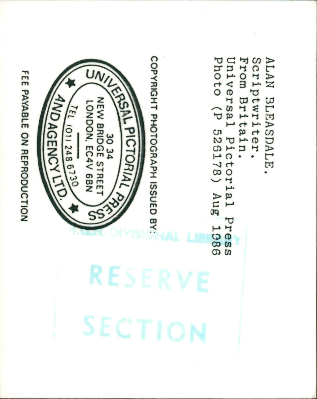 1986 - BLEAS DALE ALAN SCRIPTURITER FROM SCRIPTWRITER BLEASDALE, LONDON 1986 - BLEAS DALE ALAN SCRIPTURITER FROM SCRIPTWRITER BLEASDALE, LONDON