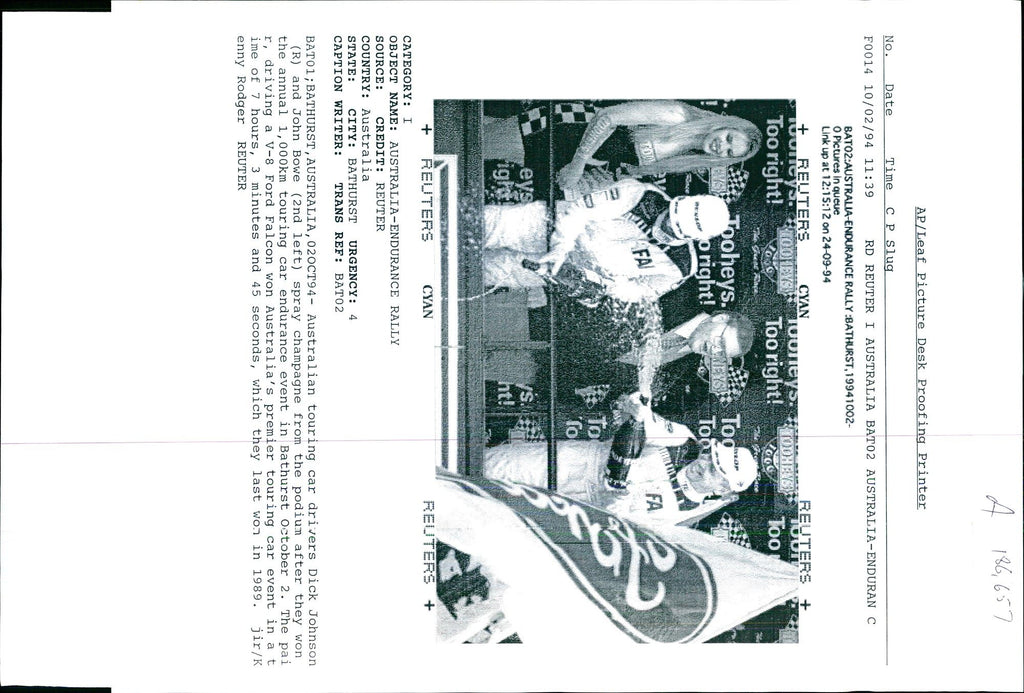 1994 CYAN MAGENTA YELLOW TONEYS TOOHEYS JOHN BOWE JOHNSON JIR CAR WRITER - Vintage Photograph