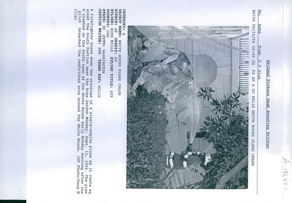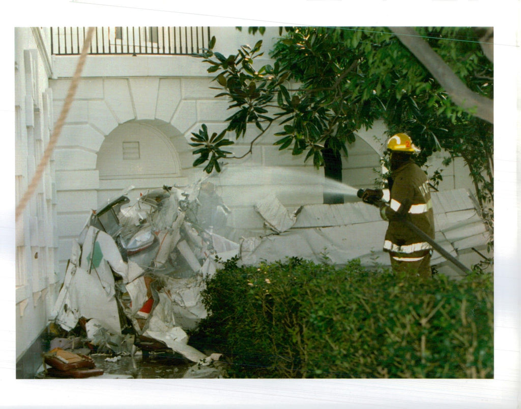 1994 PLANE CRASHED THE SOUTH LAWN WHITE HOUSE EARLY TITLE USA WRITER - Vintage Photograph