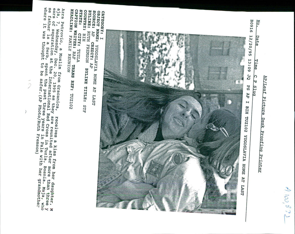 Azra Petrovic and her daughter Maja were reunited after more than three years of separation at the International Red Cross in Tuzla, Bosnia. Maja, who se father is a Serb , spent the past three years in Pale with her grandmother where it was thought to be safer. Azra Petrovic and her daughter Maja were reunited after more than three years of separation at the International Red Cross in Tuzla, Bosnia. Maja, who se father is a Serb , spent the past three years in Pale with her grandmother where it was thought to be safer.