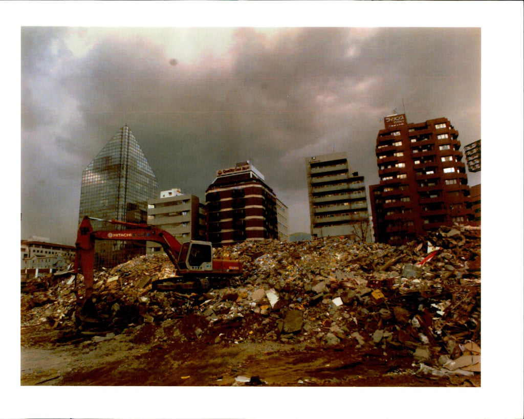 Construction crews all over the cit y continue their clean - up effort in the wake of the quake with rocked the are a on Jan. 17 , 1995. A gigantic mound of debris gets bigger each day as construction crews continue to clean-up the city of Kobe. ( AP Photo / Eric Draper ) Construction crews all over the cit y continue their clean - up effort in the wake of the quake with rocked the are a on Jan. 17 , 1995. A gigantic mound of debris gets bigger each day as construction crews continue to clean-up the city of Kobe. ( AP Photo / Eric Draper )