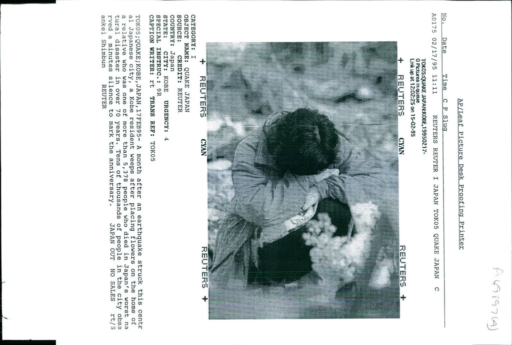 1995 MONTH AFTER EARTHQUAKE STRUCK THIS CENTR JAPANES WRITER COUNTRY DIED - Vintage Photograph