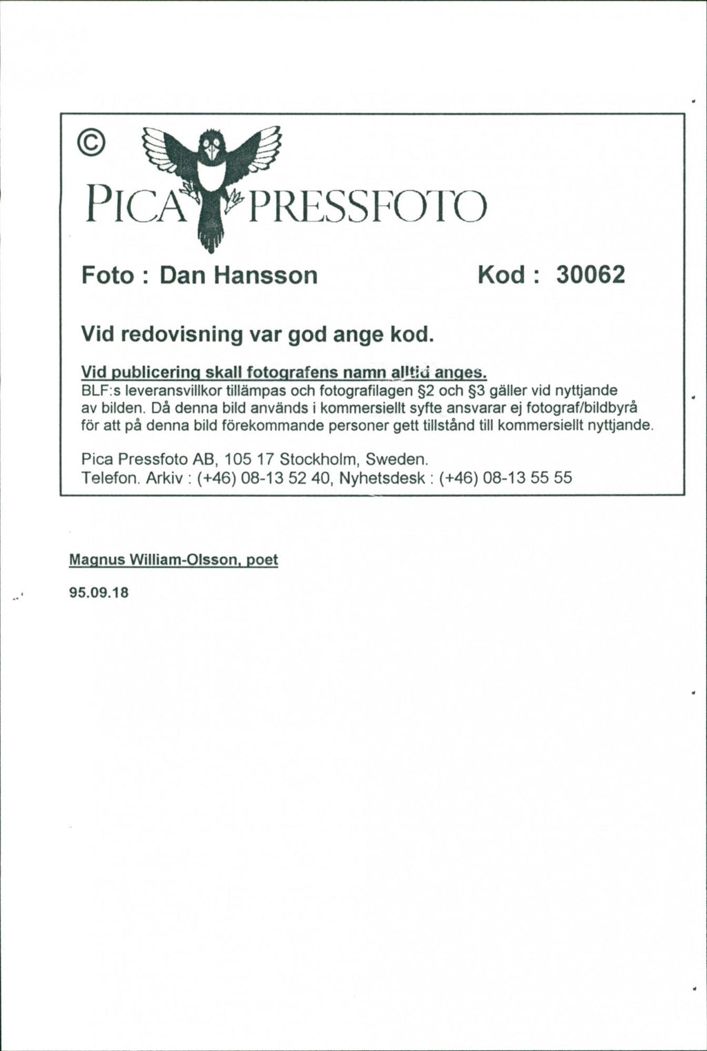 1995 TELEPHONE SWEDEN RESPONSIBLE IMAGE POET WILLIAM MICHAEL
