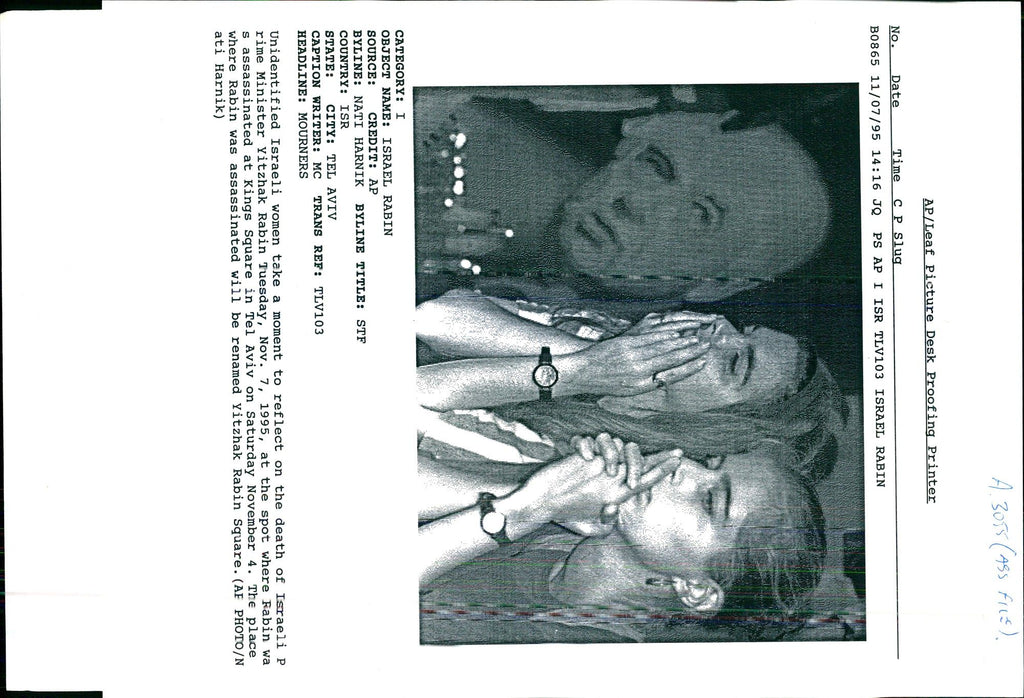1995 THE PLACE WHERE RABIN NATI HARNIK KABIN TITLE DEATH WRITER COUNTRY - Vintage Photograph