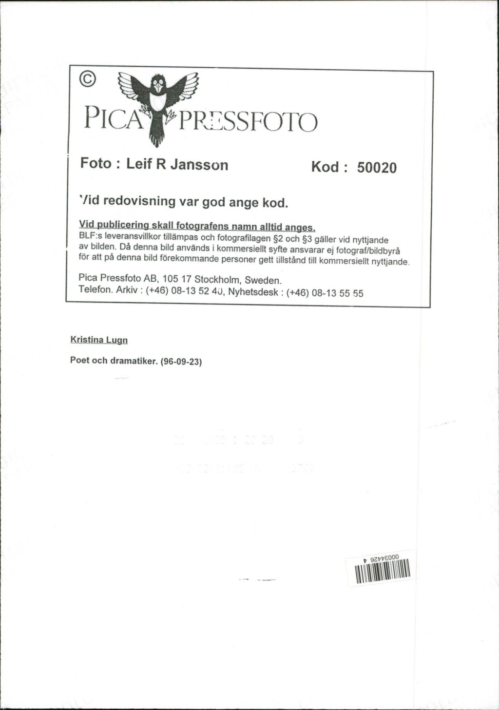 1996 SWEDEN ESPONSIBLE FUTUE IMAGE DELIVEY BLFS CODE LEIF JANSSON POET - Vintage Photograph