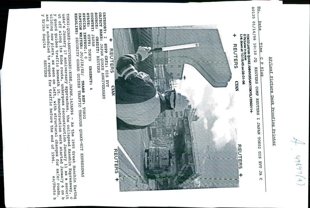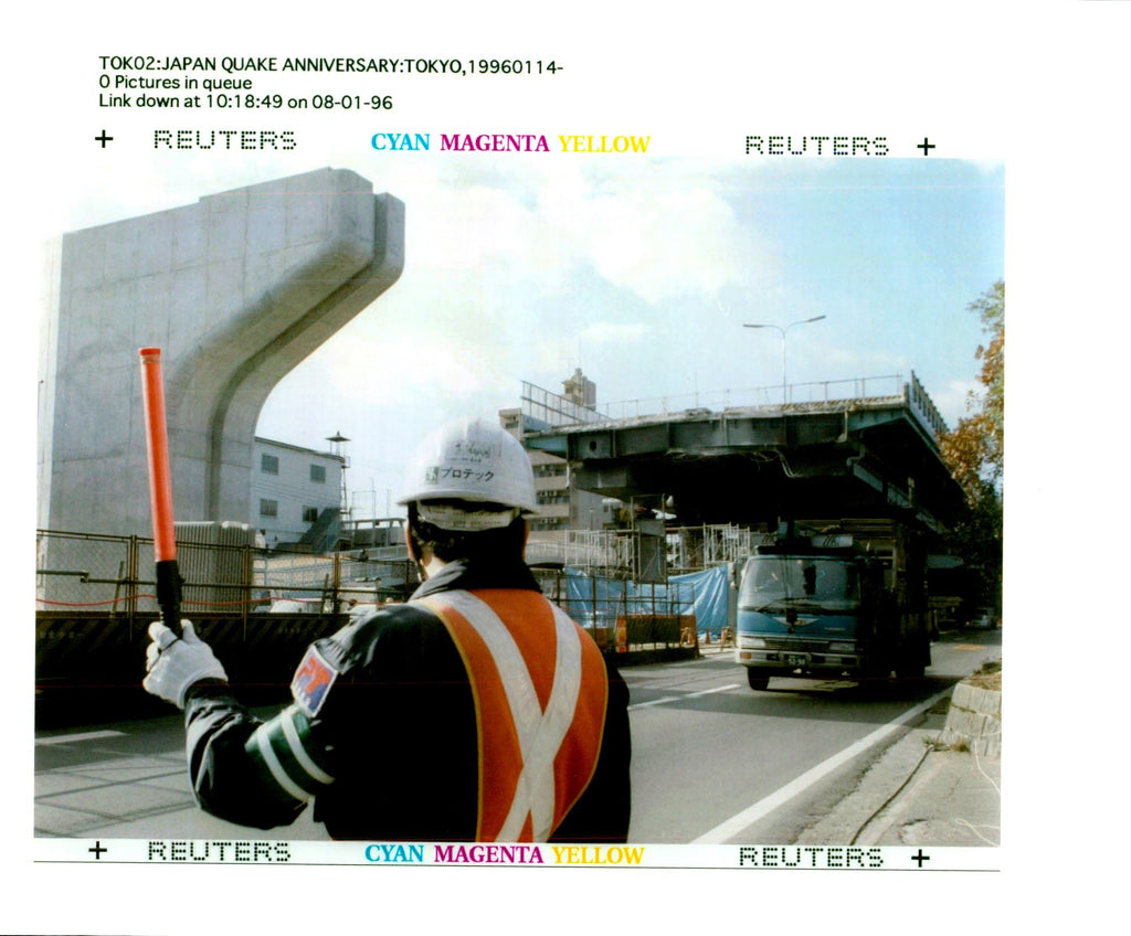 The 1995 Great Hanshin Earthq uake's January 17 anniversary approaches. The collapsed Hanshin Expressway undergoes reconstruction January 11 as a securit y guard guides traffic beneath it. Reconstruction work started January 6 on b uilding new piers with structural changes for sale and roads. The 1995 Great Hanshin Earthq uake's January 17 anniversary approaches. The collapsed Hanshin Expressway undergoes reconstruction January 11 as a securit y guard guides traffic beneath it. Reconstruction work started January 6 on b uilding new piers with structural changes for sale and roads.