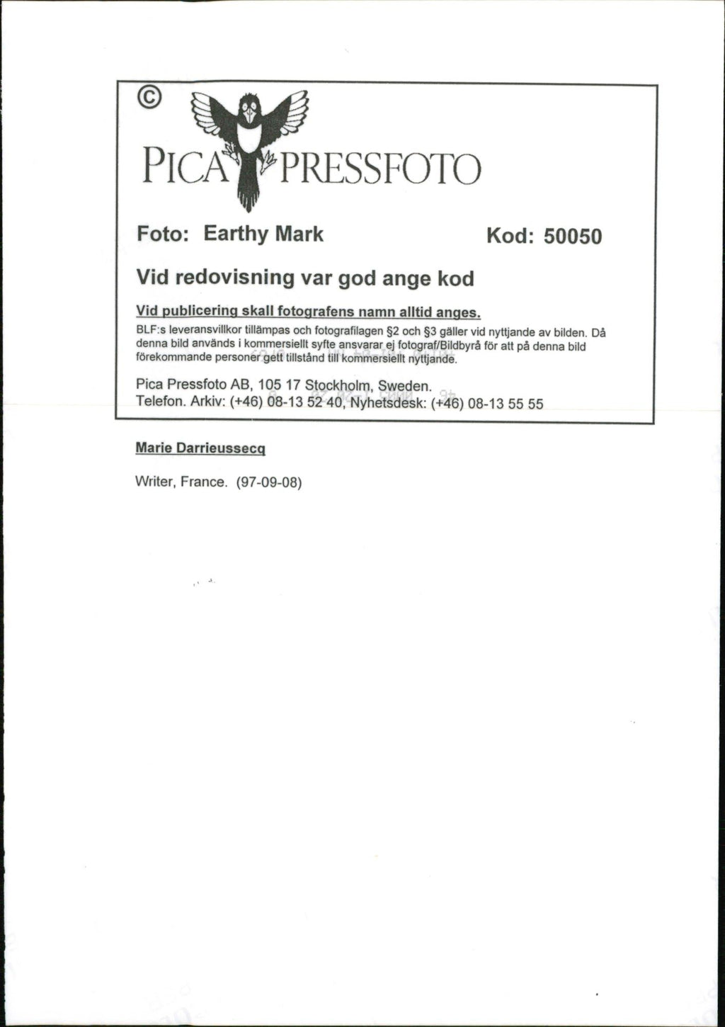 1997 TELEPHONE SWEDEN PICA RESPONSIBLE IMAGE DELIVER FRANCE WRITER 1997 TELEPHONE SWEDEN PICA RESPONSIBLE IMAGE DELIVER FRANCE WRITER