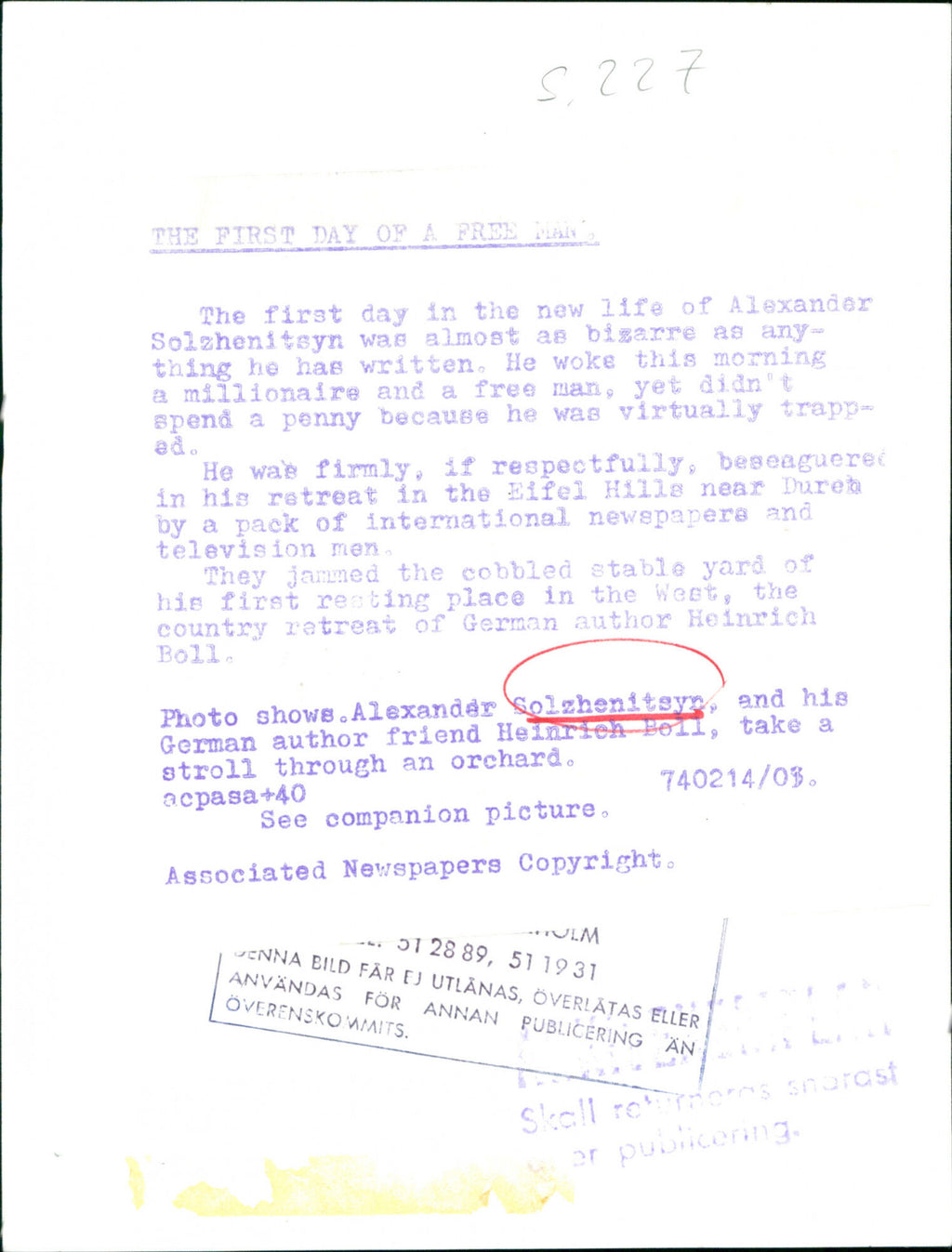 All our press photos are LIMITED ARCHIVE ORIGINALS - they are the actual prints that were used by the newspapers, they are not reprints or digital prints produced by us. All the prints are at least 30 years old and up to 100 years old.