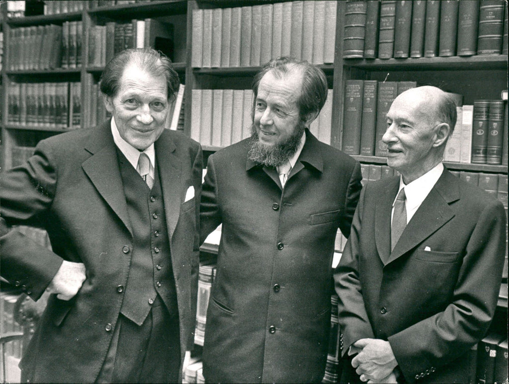 Alexander Solzhenitsyn, had a chat with his colleagues Harry Martinson and Eyvind Johnson in the Swedish Academy's Nobel Library.