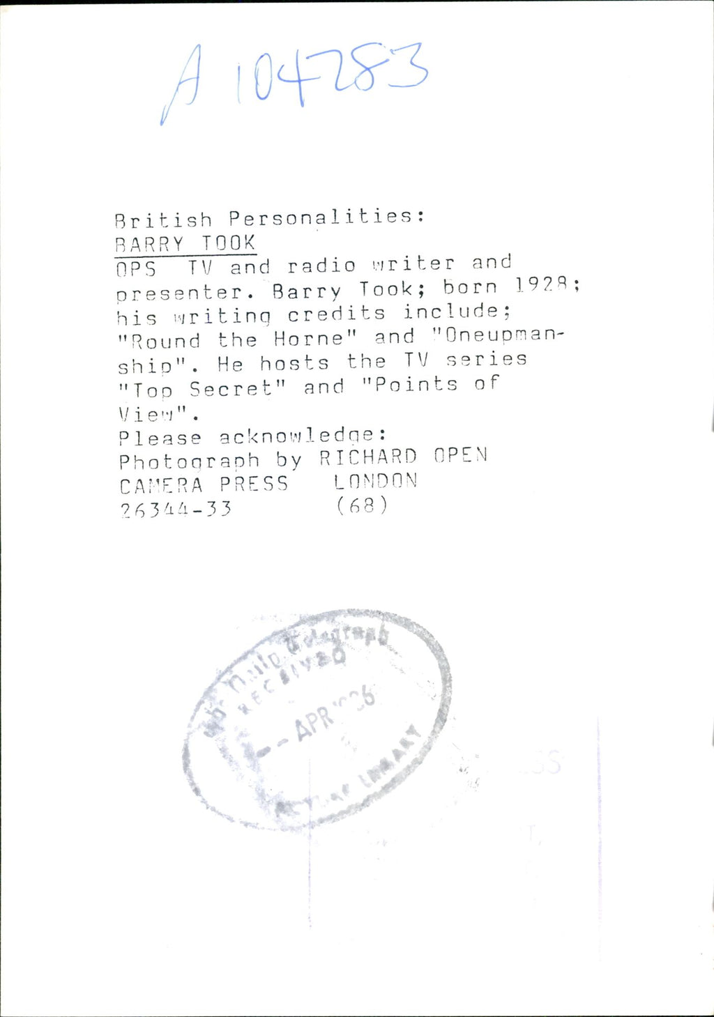 Barry Took, TV and Radio writer and presenter - Vintage Photograph