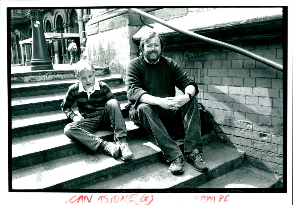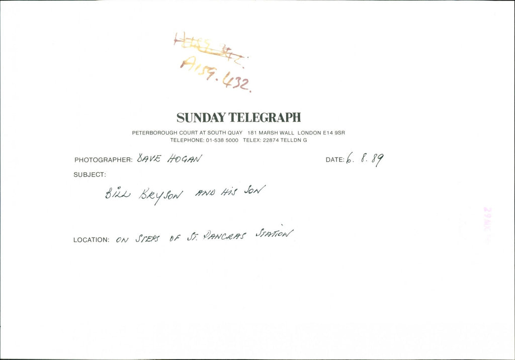 Bill Bryson and his son, on steps of St. Pancras Station. Bill Bryson is an American author. Bill Bryson and his son, on steps of St. Pancras Station. Bill Bryson is an American author.