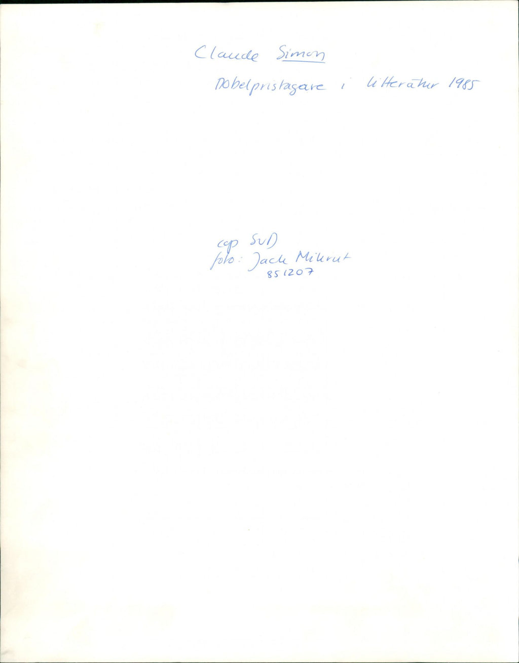 Claude Simon, 1985 Nobel Price in Literature.