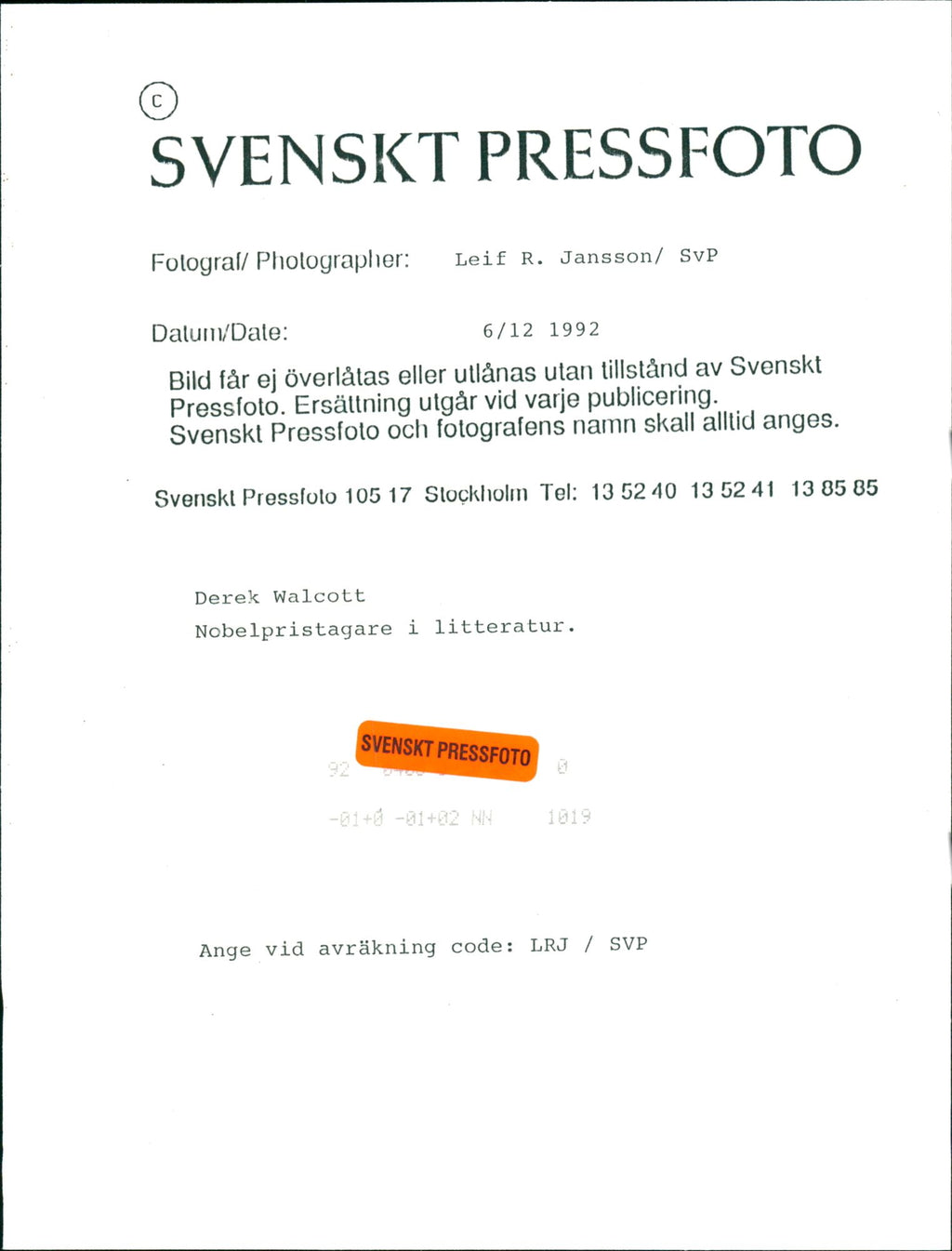 Derek Walcott, Nobel Laureate in Literature - Vintage Photograph