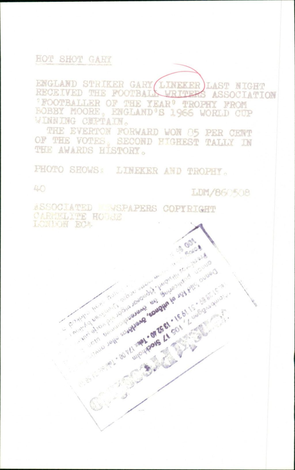 All our press photos are LIMITED ARCHIVE ORIGINALS - they are the actual prints that were used by the newspapers, they are not reprints or digital prints produced by us. All the prints are at least 30 years old and up to 100 years old.