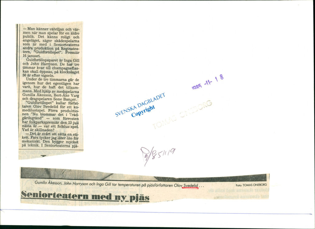 Gunilla Akesson, John Harryson och Inga Gill tar temperaturen på lekförfattaren Olov Svedelid.