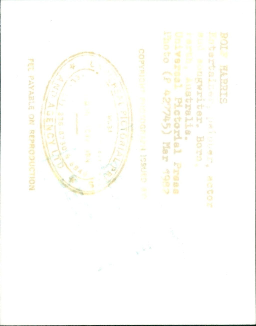 HARRIS ROLF TVI MUSIC TVI SINGER - GWRITER TARTAL FIBRIS - Vintage Photograph