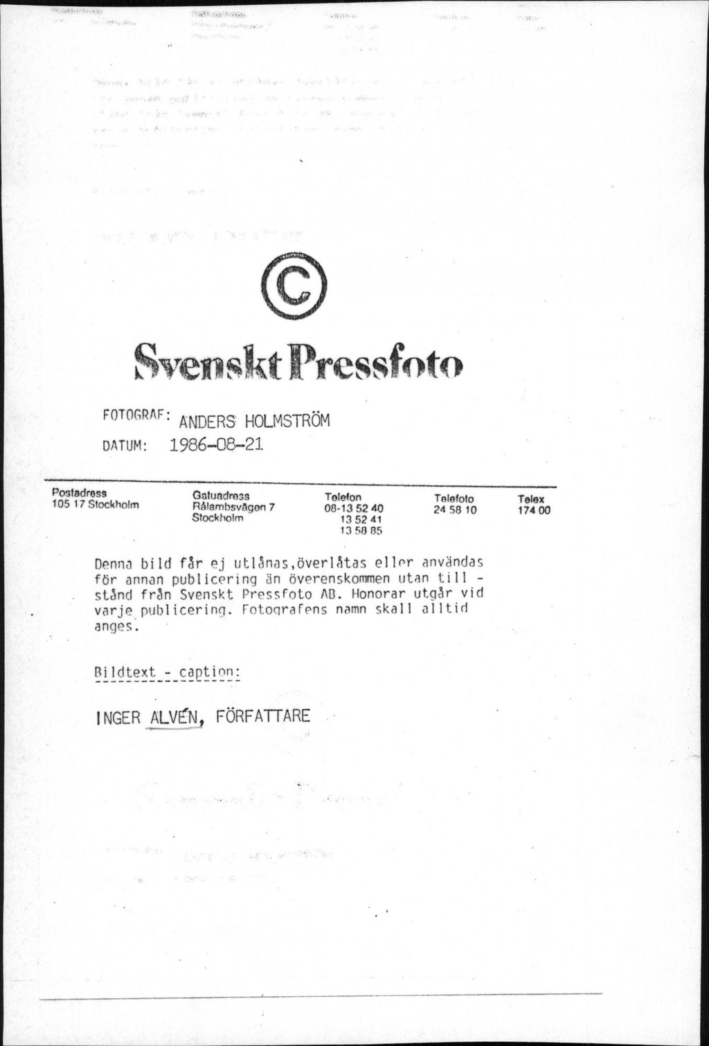 Inger Alfvén, writer Inger Alfvén, Author, author Inger Alfvén, writer Inger Alfvén, Author, author