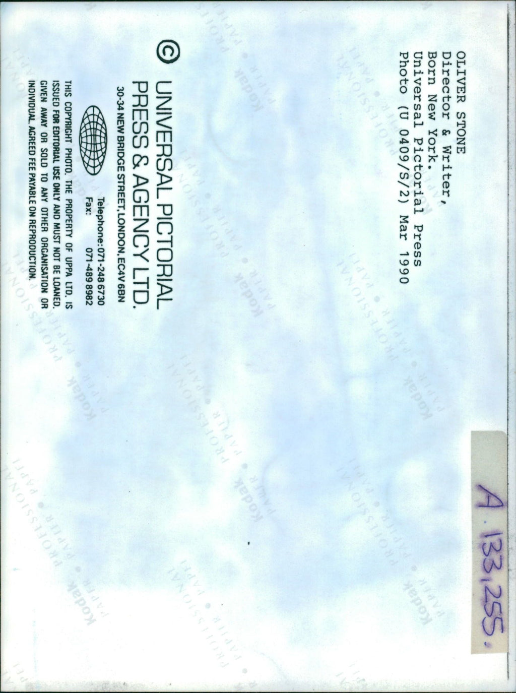 All the original vintage images are sold without watermarks. The prints are all over 30 years old and have been in the storage of the newspapers for decades. We sell them in the same conditions they were given to us by the archives.