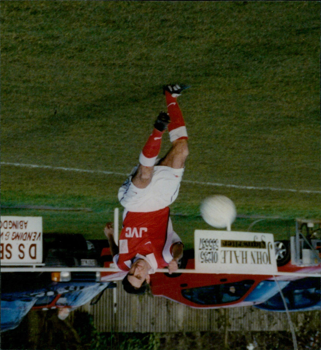 Peter Rhoades-Brown, a signwriter and football player, stands in front of a vending machine in Abingdon. - Vintage Photograph