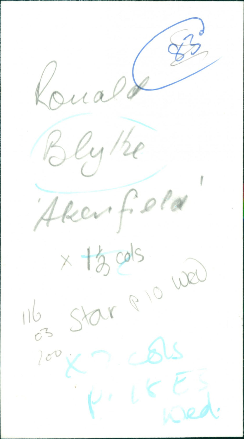 Author Ronald Blythe is an English writer, editor, and essayist. He was best known for his work "Akenfield".