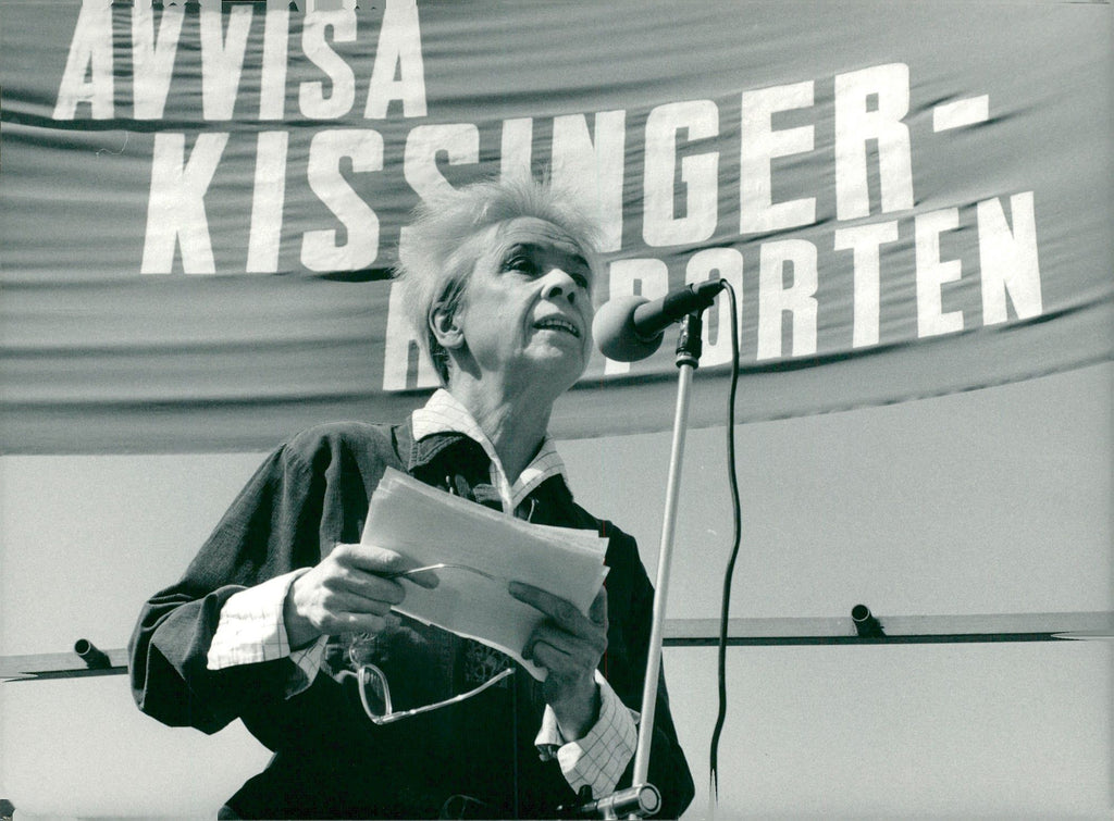 Sara Lidman speaks during a demonstration - Vintage Photograph