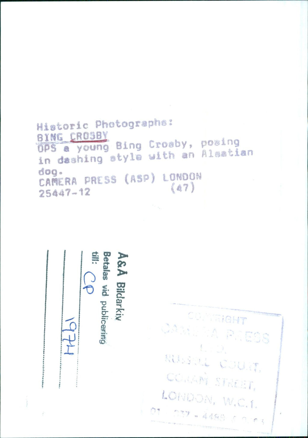 All our press photos are LIMITED ARCHIVE ORIGINALS - they are the actual prints that were used by the newspapers, they are not reprints or digital prints produced by us. All the prints are at least 30 years old and up to 100 years old.