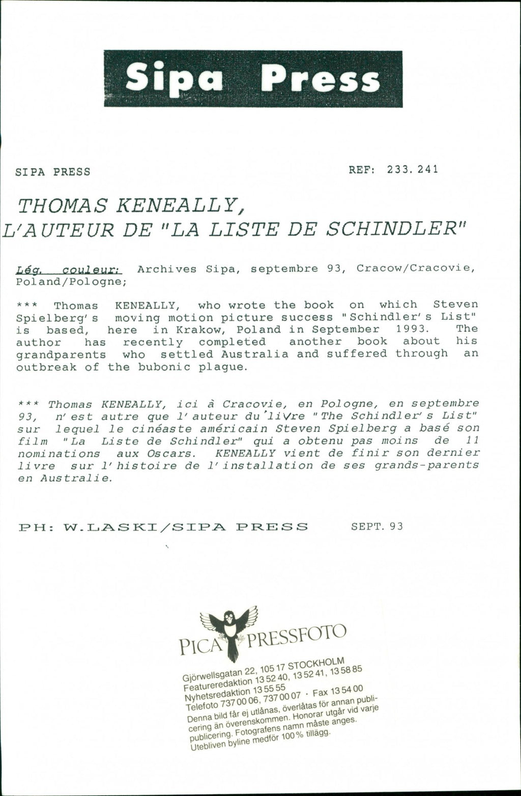 Thomas Keneally, who wrote the book on which Steven Spielberg's moving motion picture success Schindler's List, is based here in Krakow, Poland.