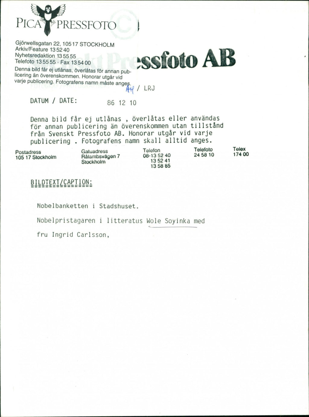 Wole Soyinka with Mrs. Ingrid Carlsson - Vintage Photograph
