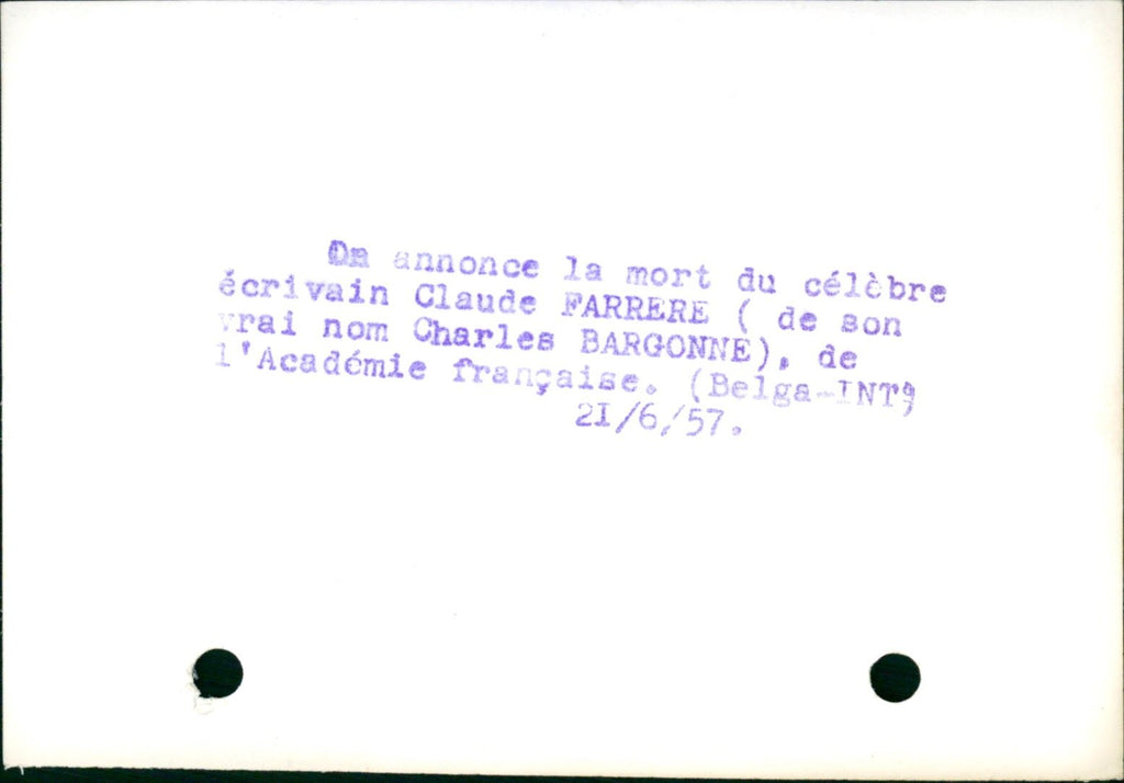 Announcement of the passing of French writer Claude Farrere (real name Charles Bargone)