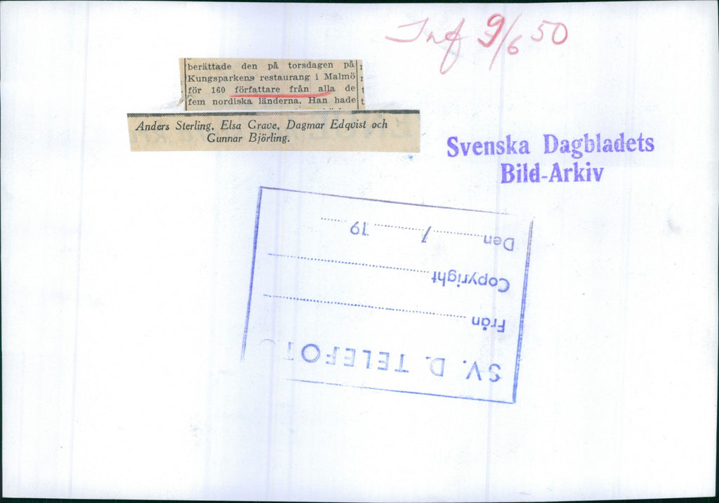 Writers' Congress in Malmo. Anders Sterling, Elsa Grave, Dagmar Edqvist and Gunnar Björling - Vintage Photograph