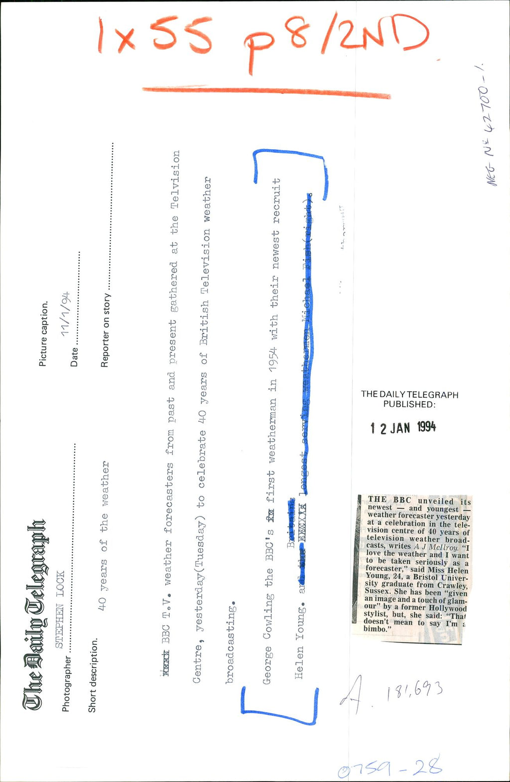 All our press photos are LIMITED ARCHIVE ORIGINALS - they are the actual prints that were used by the newspapers, they are not reprints or digital prints produced by us. All the prints are at least 30 years old and up to 100 years old.