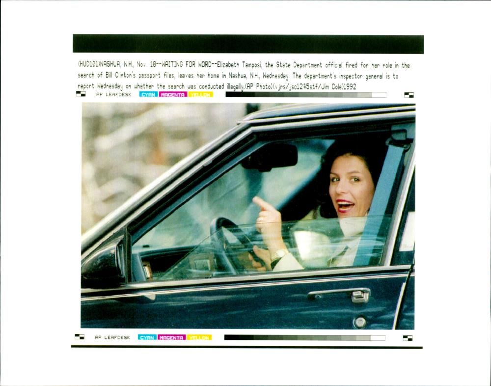 Betty Tamposi the State Dept. official fired fired for her role in the search of Bill Clinton's passport files, leaves her home in Nashua N.H. Betty Tamposi the State Dept. official fired fired for her role in the search of Bill Clinton's passport files, leaves her home in Nashua N.H.