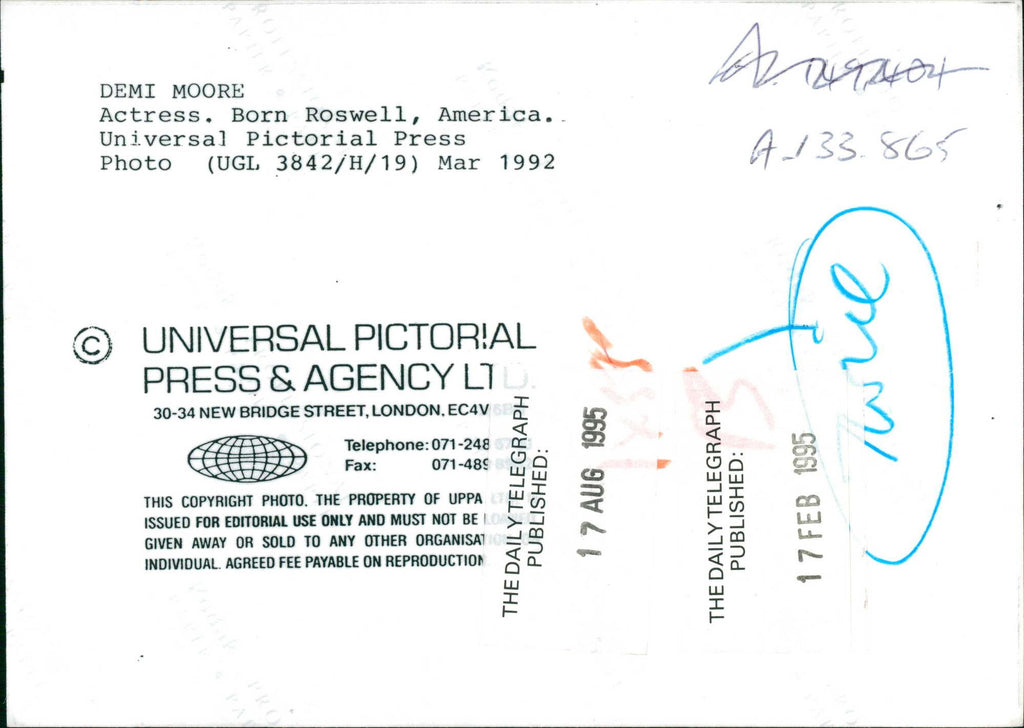 All our press photos are LIMITED ARCHIVE ORIGINALS - they are the actual prints that were used by the newspapers, they are not reprints or digital prints produced by us. All the prints are at least 30 years old and up to 100 years old.