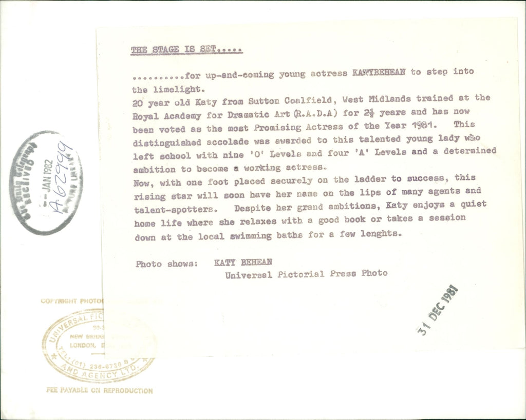 All our press photos are LIMITED ARCHIVE ORIGINALS - they are the actual prints that were used by the newspapers, they are not reprints or digital prints produced by us. All the prints are at least 30 years old and up to 100 years old.