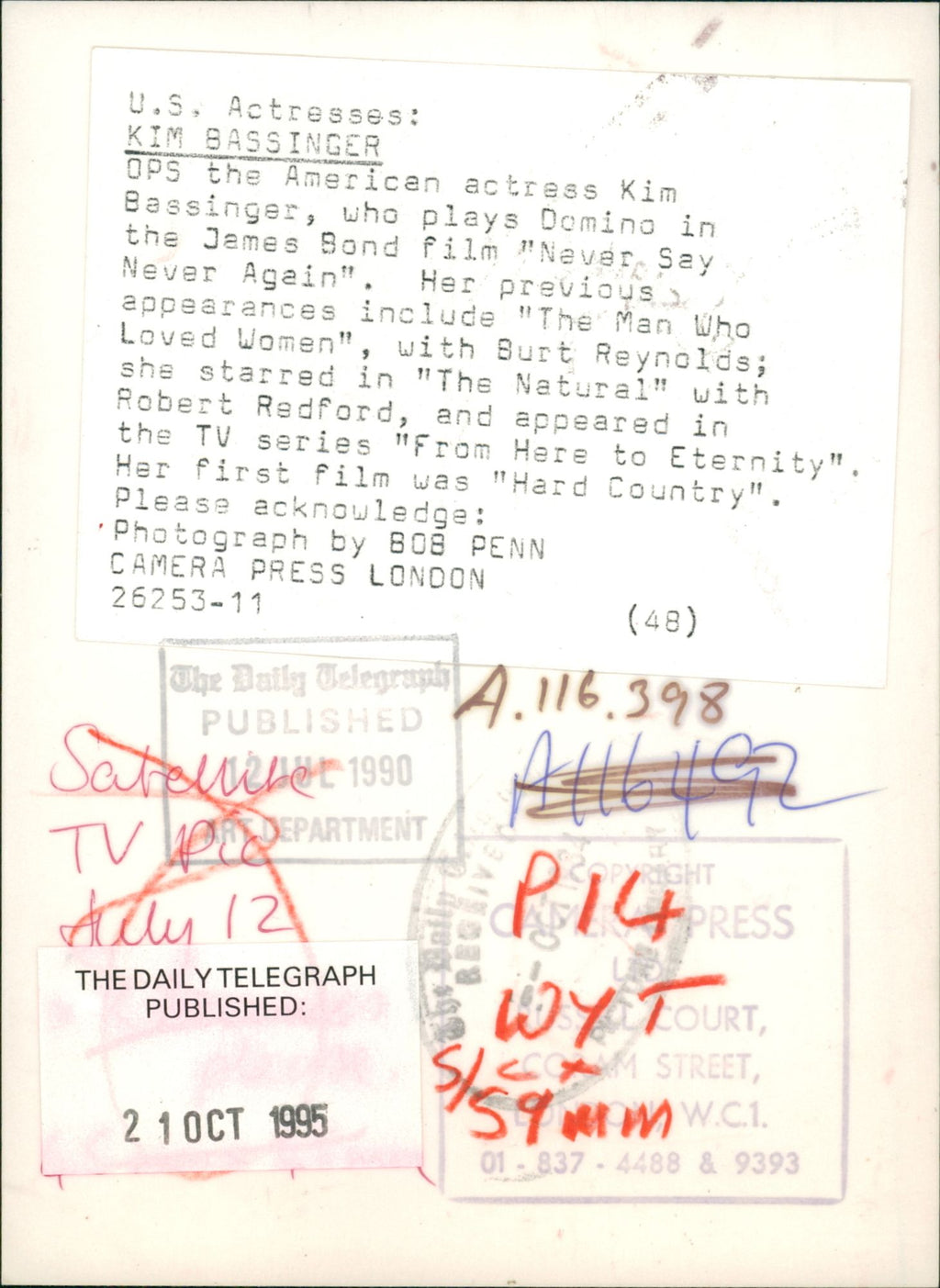 All our press photos are LIMITED ARCHIVE ORIGINALS - they are the actual prints that were used by the newspapers, they are not reprints or digital prints produced by us. All the prints are at least 30 years old and up to 100 years old.