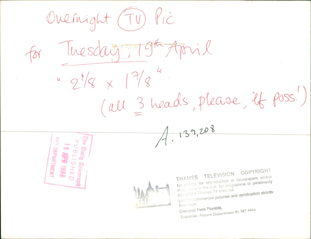 All our press photos are LIMITED ARCHIVE ORIGINALS - they are the actual prints that were used by the newspapers, they are not reprints or digital prints produced by us. All the prints are at least 30 years old and up to 100 years old.